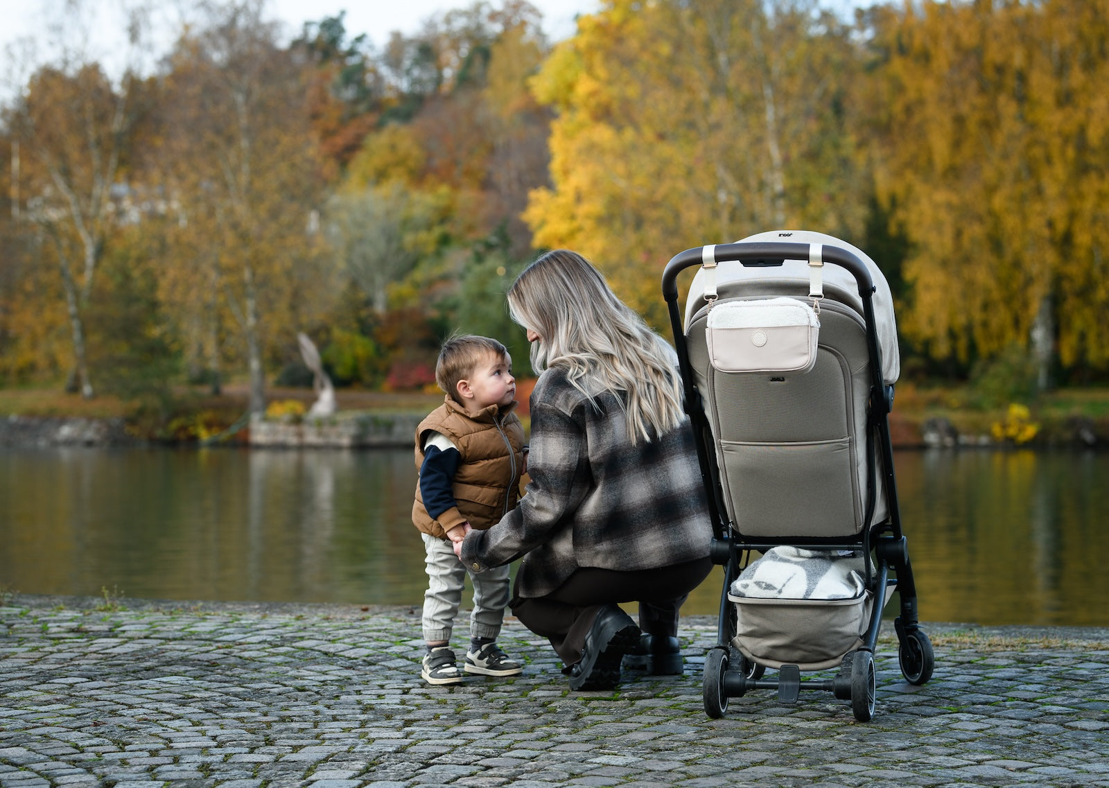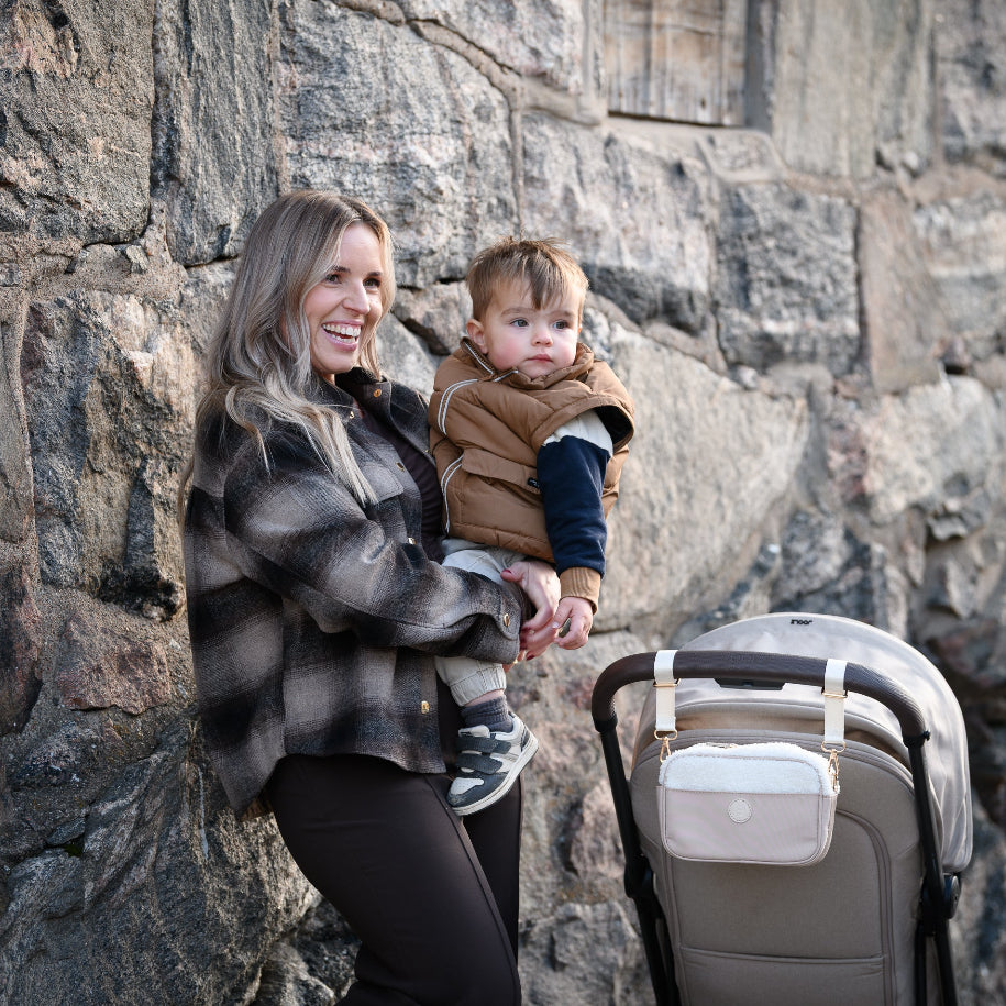 De frågorna ställde jag själv när jag blev mamma och började gå på barnvagnspromenader. Klumpiga (och om vi ska vara ärliga – rätt fula) organisers var inget alternativ. Jag ville ha något smidigare, och snyggare – en liten väska som passade perfekt på barnvagnen, men som också gick att ta med sig när man lämnar den.